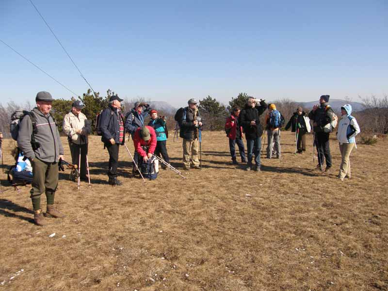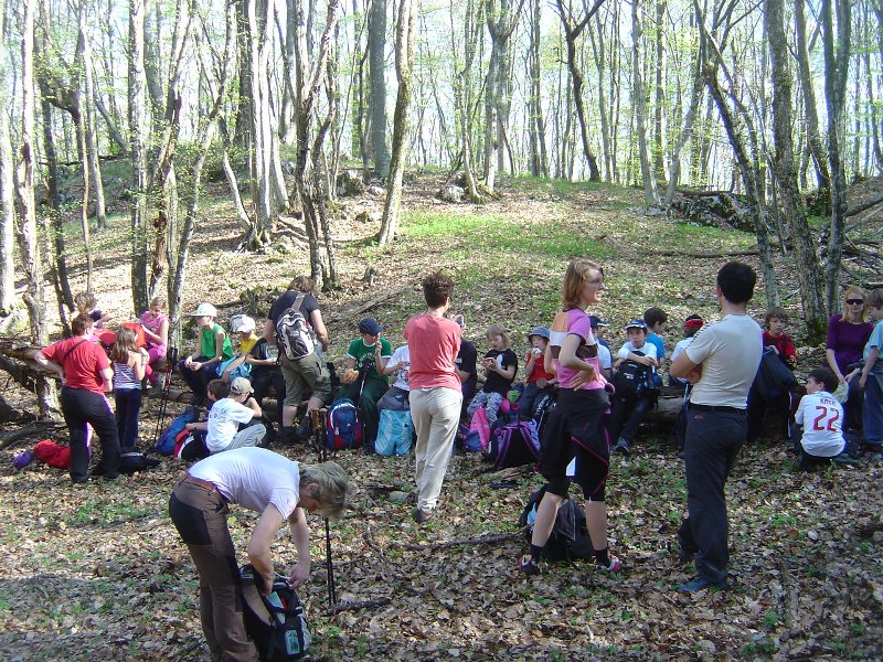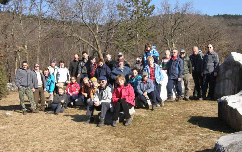 Letošnjo spomladansko sezono izletov Izletniške sekcije PD Črnuče smo pričeli v soboto, 9.4.2011 z izletom na Vremščico. Izleta s posebnim avtobusom se je udeležilo 45 otrok in njihovih staršev v spremstvu petih učiteljev z osnovne šole Narodnega heroja Maksa Pečarja s Črnuč. V lepem vremenu smo se na Vremščico podali po markirani planinski poti iz Senožeč, kraja med Postojno in Divačo. Po izstopu iz avtobusa na parkirišču v središču Senožeč smo pričeli s hojo po cesti med kraškimi hišami do manjšega spominskega parka in mimo zadnjih kmetij na robu strnjenega naselja do ograjenih pašnikov. Cesta, ki se je kmalu spremenila v kolovoz nas je pripeljala v strnjen gozd skozi katerega se planinska pot vse bolj strmo vzpenjala do prostranega travnatega pobočja Slatne (914m) pod katerim smo v rahlem spustu prečili do mrazišča na severni strani glavnega pobočja Vremščice. Tu nas je smerokaz potolažil, da imamo do vrha le še 30 minut, skupno torej okoli 2 uri zmerne hoje z vključenim postankom za malico, ki smo si jo privoščili v strmejšem spodnjem delu poti, ko je bila predvsem žeja za naše mlade planince le prehuda. Zgornji del poti je potekal po vse bolj razglednem, proti jugu odprtemu travnatemu vršnemu pobočju Vremščice. Med cvetočim spomladanskim cvetjem smo ob 11h dosegli naš cilj 1027 m nad morjem, ki se je tudi nakazovalo v ozadju pod kraškim robom. Bolj izraziti so bili zasneženi očaki Julijcev in Kamniško-Savinjskih Alp, predvsem pa bližji vrhovi Nanos, Slavnik in Snežnik. Skratka skoraj celotna Slovenija se nam je iz razgledne Vremščice ponujala kot na dlani. Poleg Črnuških planinskih škratov je istočasno v razgledih z Vremščice uživalo še okoli 100 drugih planincev, predvsem otrok. Na srečo je vrh dovolj prostran, da smo se na njem lahko primerno razporedili, da se nam ne bi »ovce« pomešale.